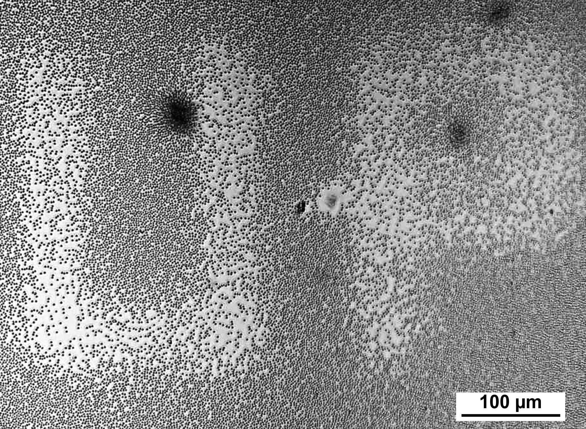 Foto: Initialen der Universität Potsdam, geschrieben in der Monolage von Mikropartikeln. Foto: Prof. Dr. Svetlana Santer.