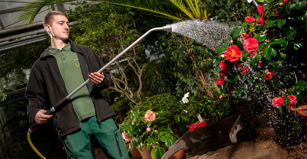 „Am Ende des Tages sieht man, was man geschafft hat“, das sei einer der Gründe, warum sie ihre Arbeit liebe, sagt Kirsten Beyer. Für sie und ihren Kollegen ist die Arbeit im Botanischen Garten ein Privileg. „Wir haben deutlich mehr Möglichkeiten und mehr Abwechslung als in einem Produktionsbetrieb“, erklärt Kiron Wahl. Sich ausprobieren, Beete selbst gestalten, austesten, welche Pflanzen wo am besten gedeihen – all das können die Gärtnerin und der Gärtner hier realisieren und erhalten zugleich Einblicke in die Forschung. Beide würden nach ihrem ersten befristeten Berufsjahr gern bleiben. „Diese Sicherheit würde ich mir wirklich wünschen“, sagt Kiron Wahl.