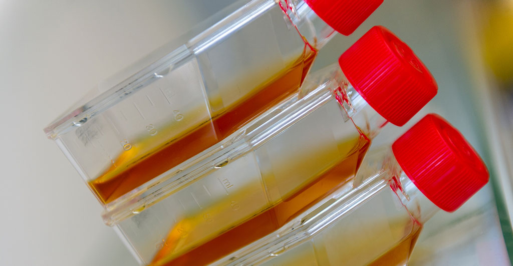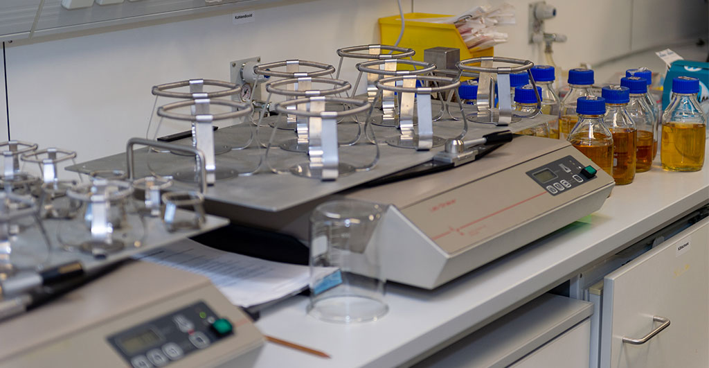 Zellkulturmedien in Glasflaschen mit blauem Schraubverschluss stehen zuhauf auf der Arbeitsfläche. Zellkulturflaschen mit rotem Schraubverschluss liegend gestapelt im Regal darüber. In beiden befindet sich eine honigfarbene Flüssigkeit, die Gräfs Dictyostelium-Amöben nährt. Der Biologe nimmt einen kegelförmigen Erlenmeyer-Kolben und schwenkt ihn mit ausgetrecktem Arm im Kreis. Durch das Glas schwappt der goldene Sud, Gräf ähnelt einem Dekantier mit Weinkaraffe. Dann befestigt er das Glas auf einer beweglichen Metallplatte: „Mit dem Zellkulturschüttler können wir unsere Dicties zu höheren Zelldichten in dem Kulturmedium wachsen lassen als in den stehenden Gewebekulturflaschen.“ Zur weiteren Präsentation legt er eine Dictykulturplatte auf ein Stereomikroskop: „Hier sehen wir ausgebildete Dicty-Fruchtkörper!“
