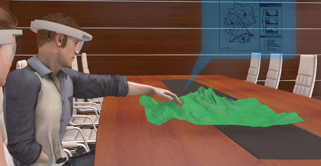 Dieses zusätzliche Wissen machen die Forschenden mithilfe von Augmente Reality (AR) – einer computergestützten Erweiterung der Realität – verfügbar. Die Grundlage dafür liefern geografische und geologische Felddaten und digitale Modelle der Landschaft. Wenn die Schulungsteilnehmer eine AR-Brille aufsetzen, soll vor ihren Augen ein gewissermaßen in der Luft schwebendes 3D-Landschaftsmodell ihres jeweiligen Einsatzgebietes in Miniaturformat erscheinen. In diesem können dann Naturkatastrophen simuliert werden. Überschwemmungen, Hangrutsche, Sturzfluten, aber auch Erdbeben und Vulkanausbrüche lassen sich in den Modellen darstellen.