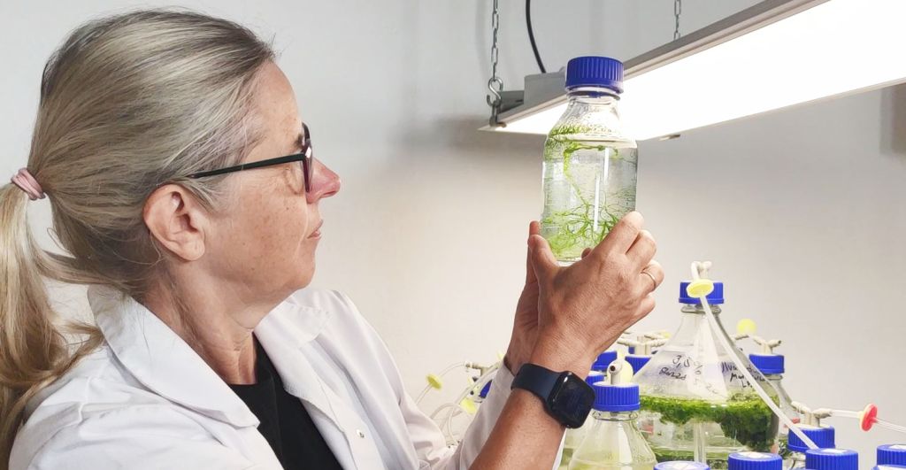 Bisher konzentrieren sich die Wissenschaftlerinnen und Wissenschaftler auf vier Organismengruppen: Makroalgen, Quallen und Pflanzen, die auf salzigen Böden gedeihen – sogenannte Halophyten – sowie Insekten als Reststoffverwerter. Diese sollen nachhaltig und klimaneutral in sogenannten urbanen Bioräumen produziert werden. Leerstehende Lagerhallen oder Bürogebäude bieten Raum für platzsparende, geschlossene Produktionssysteme, die den natürlichen Kreisläufen eines marinen Ökosystems nachempfunden und damit sehr ressourcenschonend sind. Derzeit entwickeln die Forschenden eine Pilotanlage für eine solche Produktionseinheit, in der Halophyten, Makroalgen und Quallen wachsen sollen. Sie setzen auf Salzwasserorganismen, denn Salzwasser ist im Gegensatz zu Süßwasser reichlich vorhanden. „Auch in Brandenburg mit seinen Solequellen“, betont Monika Schreiner. „Wie wäre es denn mit einer Kombination aus Algenanbau und Thermalbad? Nach dem Baden können die Besucher einen gesunden Algensmoothie genießen, der direkt nebenan produziert wurde.“
