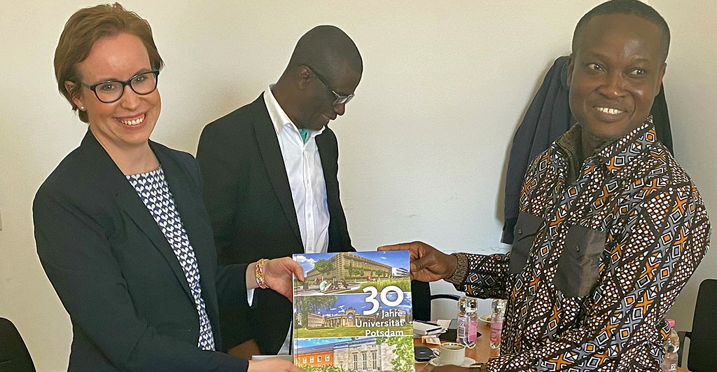Zurück in Potsdam ließen Interessensbekundungen aus der Philosophischen Fakultät und dem ZeLB nicht lange auf sich warten, und so kam es nach mehreren Zoom-Treffen im März 2022 zu einem persönlichen Treffen mit den ghanaischen Kolleginnen und Kollegen in Potsdam. Prof. Dr. Dandy Dampson, Associate Professor in Educational Administration and Management, Prof. Samuel Hayford. Dekan Faculty of Educational Studies, Dr. Richardson Addai-Mununkum und Dr. Patricia M. Amos stellten ihre Universität näher vor und konkretisierten ihre Vorstellungen von einer künftigen Kooperation.