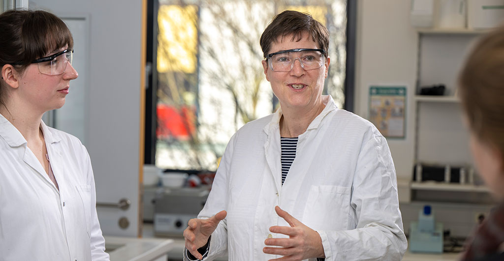 In den Unterrichtmaterialien frischen die Lernenden zunächst auf spielerische Weise Grundlagenwissen auf, das sie für die Experimente brauchen, erzählt die Studentin. Dann geht es ans Experimentieren: „Wichtig ist mir, dass sie selbst aktiv werden. Denn das kommt im Chemieunterricht oft zu kurz“, sagt Seifert. In einem Versuch erhitzen die Schülerinnen und Schüler im Reagenzglas ein Protein-Isolat aus brandenburgischen Lupinen. Gelingt das Experiment, verfärbt sich das hellgelbe Pulver zum Beispiel violett. Für Nährstoffe sind solche Farbreaktionen typisch. „Je mehr Eiweiß enthalten ist, desto farbintensiver ist die Lösung“, erklärt Jolanda Hermanns. Anschließend gibt es eine meinungsbildende Diskussion zur Ernährung mit Lupinen und Kichererbsen, für die Seifert eine Ausgangsfrage entwickelt hat. „Das Interesse an Nachhaltigkeit ist bei jungen Menschen sehr groß“, sagt Hermanns. „Im Chemieunterricht lernen sie etwas über Proteine und Aminosäuren, können das aber in der Regel nicht auf ihre Interessen anwenden. Wir schlagen hier eine Brücke.“ Die Unterrichtsreihe wollen die Didaktikerin und ihre Studentin in einer Fachzeitschrift veröffentlichen, damit Lehrerinnen und Lehrer sie auch tatsächlich in der Schule ausprobieren. „Außerdem plane ich eine Lehrkräftefortbildung, in der mehrere Unterrichtsreihen meiner Studierenden zum Thema ‚pflanzliche Proteine‘ vorgestellt werden“, so Hermanns.