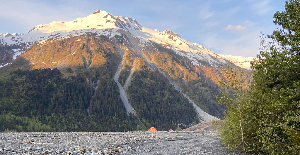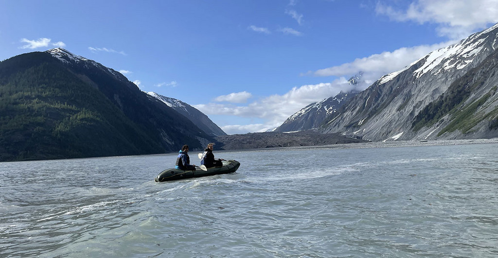 Im Frühsommer 2023 reisten Doktorandin Natalie Lützow, Professor Oliver Korup, sowie Projektleiter Dr. Georg Veh in den Südosten Alaskas, um dort – fernab jeglicher Zivilisation – knapp zwei Wochen lang den Desolation Lake zu vermessen. Siedlungen gibt es dort weit und breit keine, wenn der See ausbricht, fließt das Wasser in die Lituya Bay. Was interessiert sie also gerade an diesem See? „Der Desolation Lake liegt in ungewöhnlich steilem Terrain“, sagt Georg Veh. Das Gelände ist enorm schroff, es geht innerhalb von nur wenigen Kilometern vom Meeresspiegel steil bergauf bis auf 5.000 Meter, in den engen Tälern liegen Gletscher mit Seen, die regelmäßig ausbrechen. Außerdem ist die Gegend seismisch hochaktiv: Es gibt regelmäßig Erdbeben, das Gestein bröckelt, die Landschaft verändert sich in relativ kurzer Zeit. „Für Geomorphologen eine superspannende Gegend!“ Ein Urteil, das auch auf den See und seine Ausbrüche zutrifft: Der Desolation Lake ist zwölf Quadratkilometer groß und enthält rund 500 Millionen Kubikmeter Wasser. Wenn er ausbricht, was seit 1972 mindestens 48 Mal passiert ist, ergießt sich ein Großteil seines Inhalts durch die Täler in Richtung Bucht. „Dabei führt jede einzelne Flut Unmengen Sediment mit sich“, erklärt Natalie Lützow. „Dazu zählen auch schon mal Gesteinsbrocken so groß wie ein Truck.“