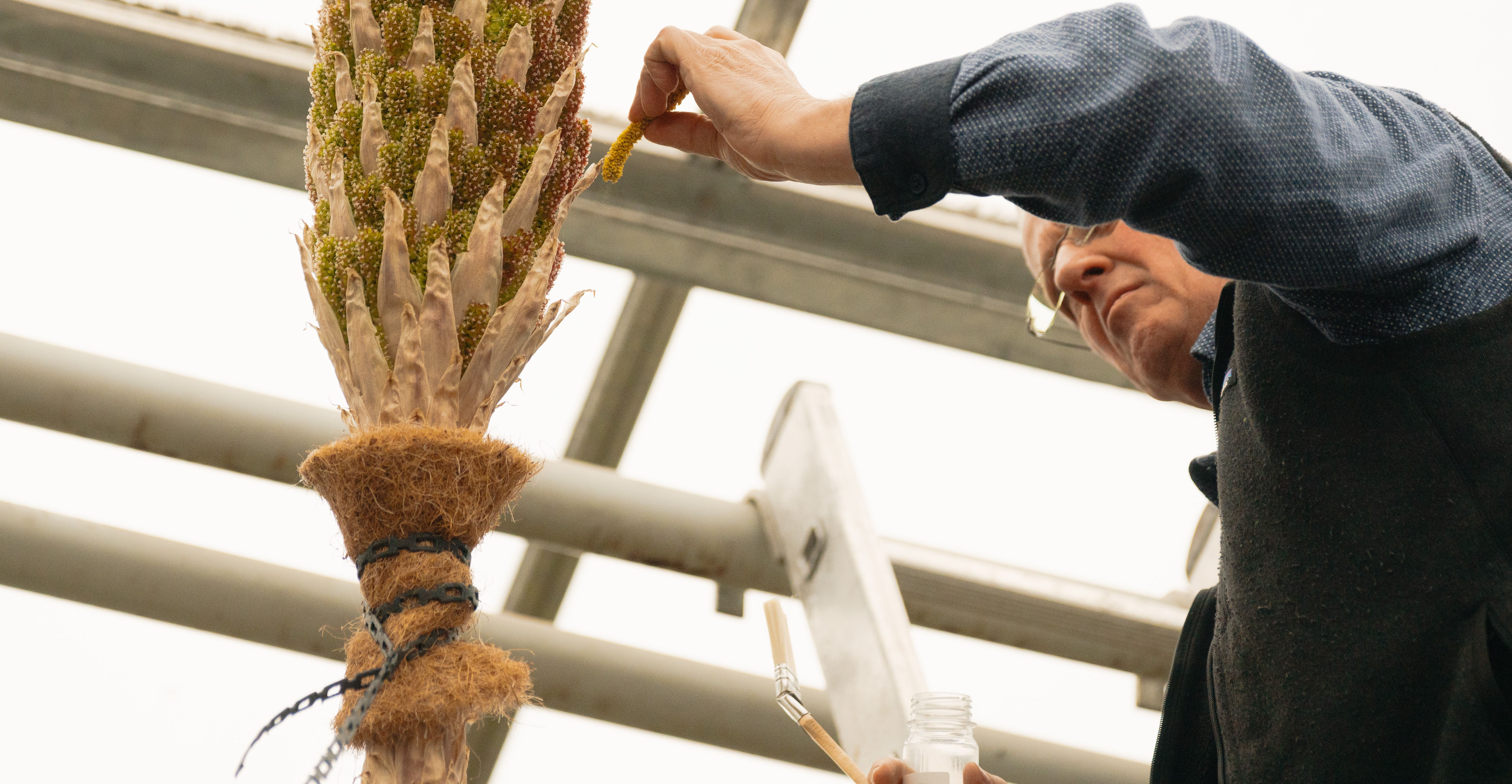 Er ist bereits 45 Jahre alt, blüht aber nun zum ersten Mal: der Stachellose Rauschopf (Dasylirion quadrangulatum) im Botanischen Garten der Universität Potsdam. Spektakulär ist der hohe Blühtrieb der an sich nur zwei Meter großen Pflanze. „Er reicht bis unter das Glasdach des Gewächshauses und musste mit Seilen zur Seite gezogen werden, um nicht oben anzustoßen“, berichtet der Kustos des Gartens, Dr. Michael Burkart. Dabei stellte sich heraus, dass es sich um eine weibliche Pflanze handelt. „Dank des Pollens eines zeitgleich blühenden männlichen Exemplars dieser Art im Botanischen Garten Berlin-Dahlem konnte die Potsdamer Pflanze bestäubt werden. Wenn das Experiment gelingt, werden sich Samen entwickeln“, hofft Burkart und dankt den Kolleginnen und Kollegen des Nachbargartens ausdrücklich. Die blühende Pflanze kann voraussichtlich bis in den Sommer im Kakteenhaus besichtigt werden.