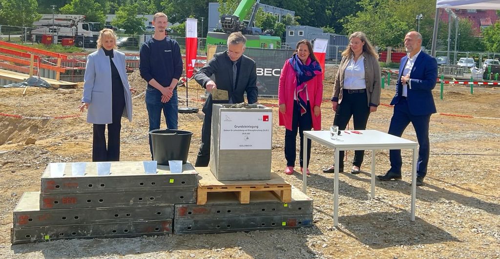 Vizepräsidentin für Lehre, Studium und Europa der Universität Potsdam Dr. Britta van Kempen: „Ich freue mich sehr, dass die Universität Potsdam nun mit dem ersten Gebäude für die Lehrkräftebildung einen sichtbaren Ort für diesen so wichtigen Bereich bekommt. Immerhin ist ein Viertel unserer Studierenden mit dem Abschlussziel Lehramt immatrikuliert. Dieses neue Gebäude wird die Bedeutung eines gemeinsamen Platzes, eines anfassbaren Zentrums für die Lehrkräftebildung zeigen. Als Nukleus wird es eine Inspirationsquelle sein, in der Möglichkeiten des Austausches innerhalb, aber auch außerhalb der akademischen Lehre und Forschung zur Verfügung stehen. Ein Ort auch des Transfers. Mit der Eröffnung in 2026 sehe ich zukünftig Vertreterinnen aller drei Phasen – Studium, Vorbereitungsdienst und Schule – in diesem Gebäude zusammenkommen, um für die Brandenburger Schülerinnen und Schüler zeitgemäße Unterrichtskonzepte zu entwickeln.“