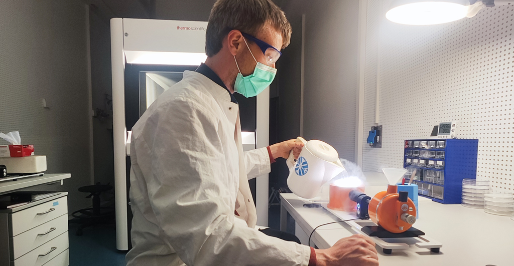 Abbildung 3: Dr. Jakob Ruickoldt bei der Überführung der Proben in den Probenhalter. Foto: Sophie Reisdorf