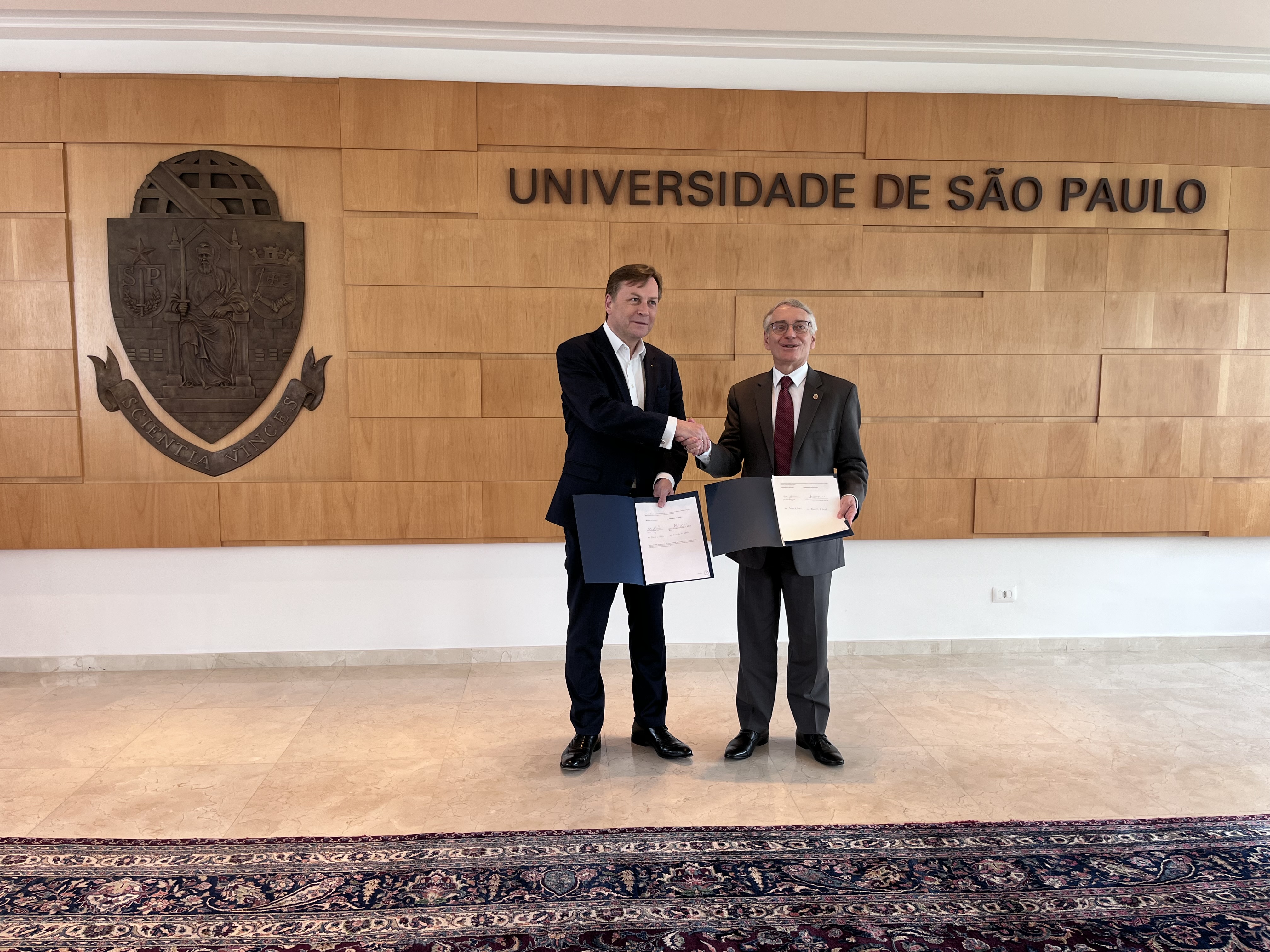Foto 2: Uni-Präsident Prof. Oliver Günther, Ph.D. und Rektor Aluísio Segurado nach der Verlängerung des Vertrags zwischen den Universitäten Potsdam und Sao Paulo (USP). Foto: Sven Dinklage