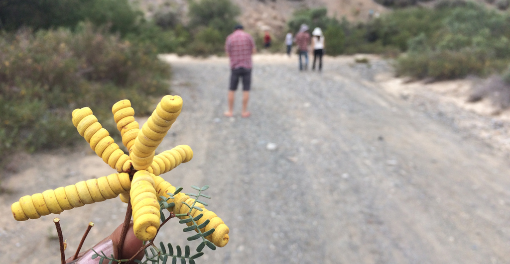 We are curious about some of the shrubs and native plants in the plains, which have small leaves and show desert like conditions, is about 1.5 m high, and produced a yellow spiral seedpod. No one, even the locals, could identify this interesting plant.