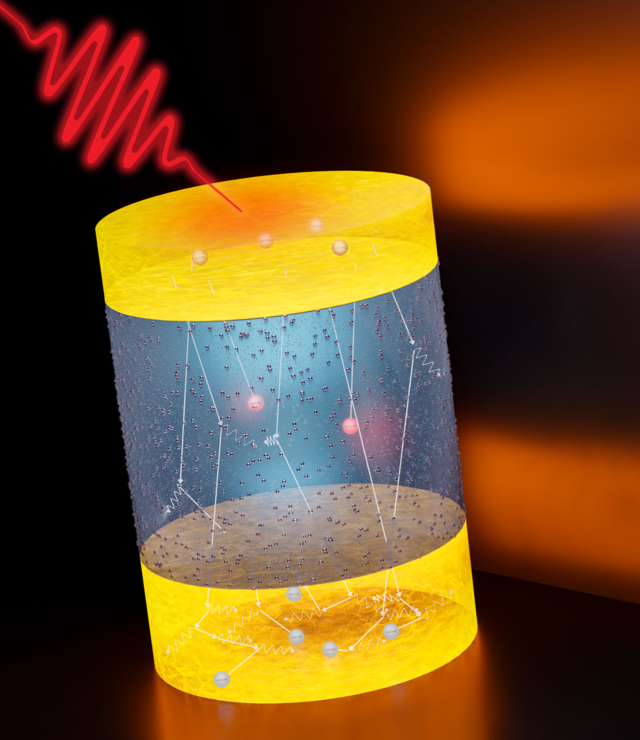 Image: Artist‘s view of heat transport in a trilayer metal composite material. Image credit: Felix Stete/Jan Pudell