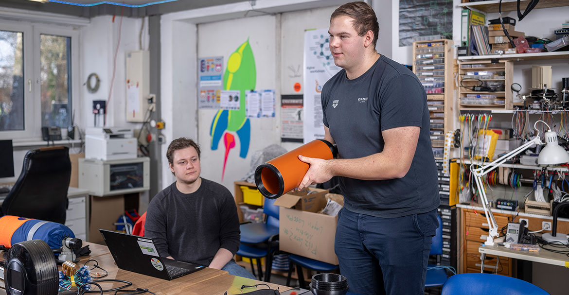 “We had to simplify a lot of things and adapt them to the needs of future users,” says Leon Oparin, summing up his experience with the project. “It was essential for us to find the right balance between scientific methods and practical work.” Both students are now also involved in a follow-up project. They want to add an important detail to their breathing apparatus dummy and develop a pressure gauge that shows how much breathable air is left in the bottle. To do this, they are programming software to calculate exactly how much air is needed per second and when supplies would be exhausted. A warning sound beeps when the supply is running low. “This is an important add-on for realistic training scenarios,” notes Eik Malte Saathoff.