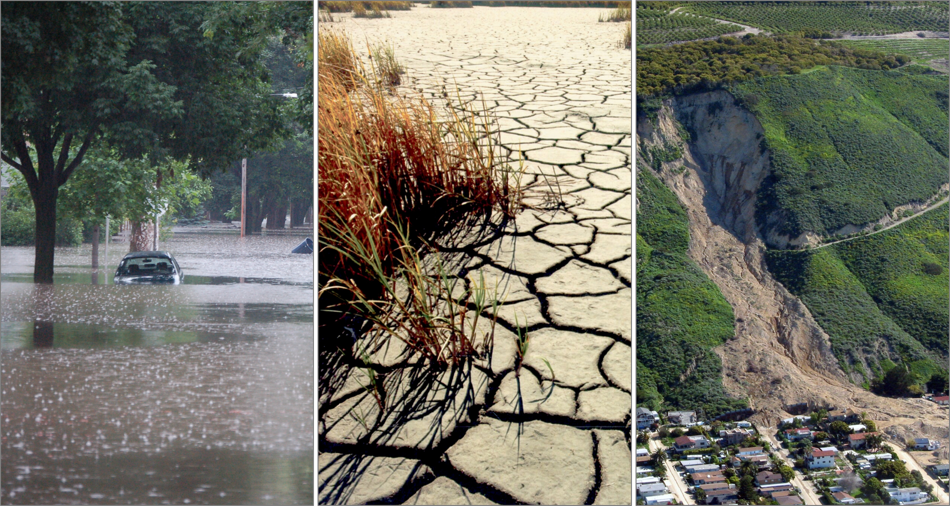 Image 1: Floods, droughts, and rainfall-induced landslides affect millions of people every year. Image Credit: USGS, Don Becker/Mark Reid.