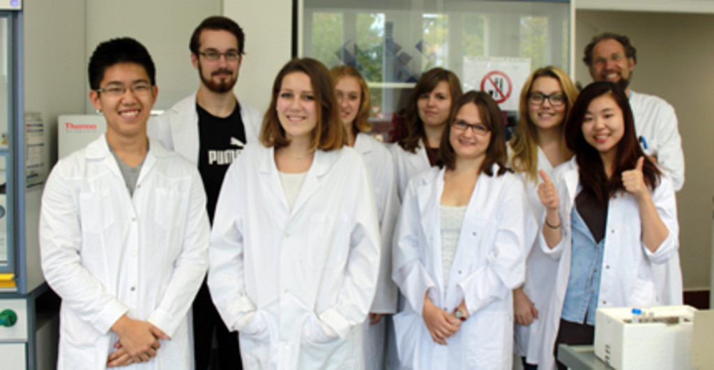 Im Oktober waren zum fünften Mal in Folge Schüler des Leistungskurses Biologie der 12. Klasse aus dem Leibniz-Gymnasium Potsdam und der Berlin-Brandenburg-International-School Kleinmachnow zu einem einwöchigen Praktikums im Institut für Ernährungswissenschaft der Universität Potsdam zu Gast.  Prof. Dr. G. Püschel und Dr. habil. F. Neuschäfer-Rube Experimente experimentierten mit den beiden Gruppen – zu denen jeweils vier Schüler gehörten – zu Themen des Gegenstandskatalogs für das Abitur bzw. International Baccalaureate durchzuführen: Die Schüler nahmen Bakterienwachstumskurven in Abwesenheit und Anwesenheit unterschiedlicher Konservierungsmittel auf. Ferner klonierten sie ein PCR-Produkt in einen Vektor, transformierten Bakterien und wiesen anschließend die erfolgreiche Klonierung durch Restriktionsverdau des von ihnen gereinigten Plasmids nach. Der Renner war aber der Nachweis einer Bittergeschmacksrezeptorvariante in der eigenen genomischen DNA durch PCR und anschließende Analyse eines Restriktionslängenpolymorphismus und die Korrelation dieser genomischen Daten mit dem eigenen Phänotyp durch die Verkostung unterschiedlicher konzentrierter Lösungen mit der entsprechenden Bittersubstanz. Eine Mutation führt dazu, dass etwa ein Viertel der Menschen diese Bittersubstanz gar nicht schmecken kann, andere sie aber als extrem unangenehm bitter wahrnehmen. Die Experimente machten für die Schüler die in der Schule nur theoretisch behandelten Techniken der Molekularbiologie anschaulich und fassbar. Für die Leibniz-Gymnasium Schüler war die auf Englisch durchgeführte Lehrveranstaltung mit den Schülern der BBIS zudem eine Gelegenheit, internationale Wissenschaftsluft zu schnuppern. Das Praktikum mit den durchweg hoch motivierten und interessierten Schülern hat nicht nur den Schülern, sondern auch den Lehrenden großen Spaß gemacht. Wiederholung geplant, Nachahmung empfohlen, Sponsor gesucht.
