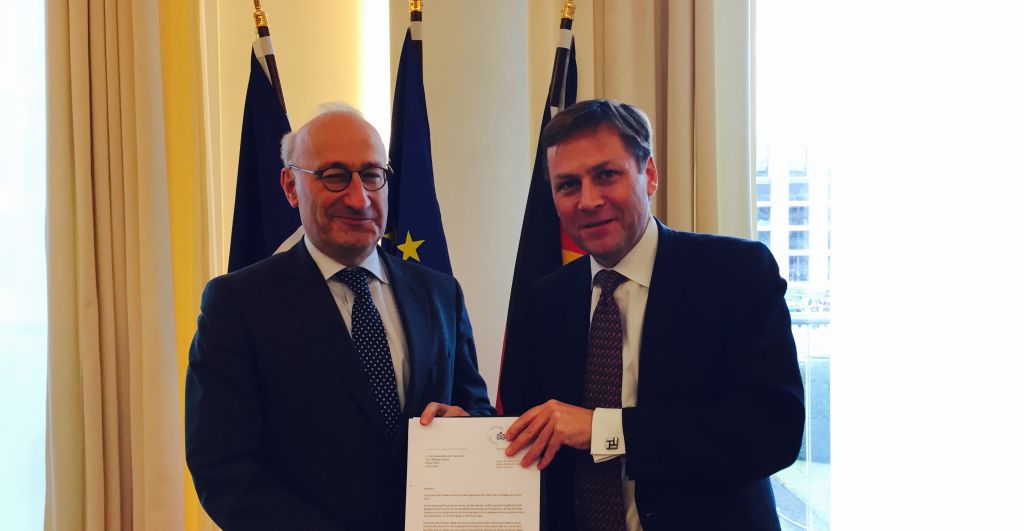 Foto: Der französische Botschafter in Deutschland, Philippe Etienne, und der Präsident der Universität Potsdam, Prof. Oliver Günther, Ph.D., Foto: Französische Botschaft