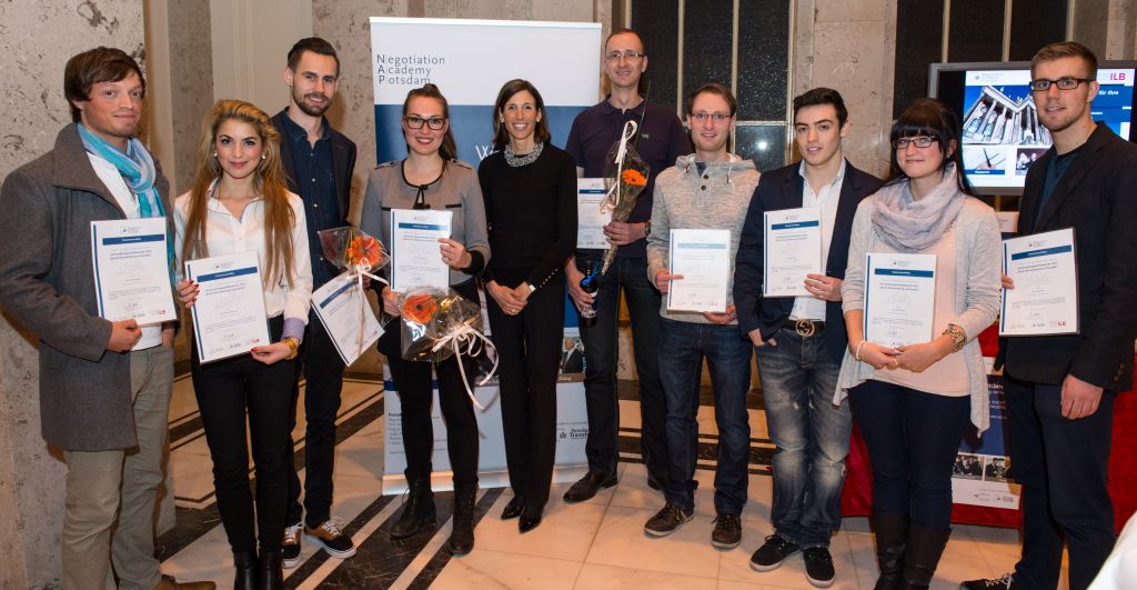 Die zehn besten Verhandlungstalente aus Berlin und Brandenburg wurden am 3. März 2015 von der Negotiation Academy Potsdam ausgezeichnet. „Wir sind hocherfreut über die mehr als 200 Teilnehmerinnen und Teilnehmer des Verhandlungswettbewerbs“, betonte Uta Herbst, Professorin für Marketing an der Universität Potsdam und Direktorin der Negotiation Academy. Zwischen dem 18. und 20. Februar 2015 bewiesen die Teilnehmenden ihr Verhandlungsgeschick. Bei einem fiktiven Autokauf sollte das Ziel der Verhandlungen sein, einen möglichst hohen Gewinn zu erzielen.