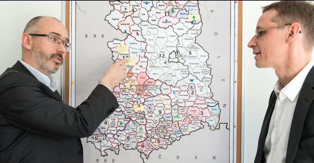 Ein grauer Schrank in einem Großraumbüro, angefüllt mit je paarweise stehenden Ordnern. Darüber hängt eine Karte der ehemaligen Deutschen Demokratischen Republik (DDR), die einstigen Kreise sind vielfarbig bunt gekennzeichnet, kleine Pins über das gesamte Gebiet verteilt. Unauffällig, aber was sich dahinter verbirgt, ist durchaus spektakulär. Es ist ein ungeahnter ungeahnter Schatz, den das Team um Prof. Dr. Ulrich Kohler und Dr. Marian Krawietz gehoben hat: Die Ordner enthalten sogenannte Eingabenstatistiken. Hierbei handelt es sich um Auswertungen von offiziellen Beschwerden, Anregungen, aber auch Lobesbriefen, aus nahezu allen Winkeln der DDR – über fast 20 Jahre hinweg von 1970 bis 1989. Mit ihrer Hilfe wollen die Sozialwissenschaftler weitreichende Einblicke in die Soziologie des DDR-Alltags erhalten und hoffen, dabei nicht zuletzt eine wichtige Frage beantworten zu können: War die friedliche Revolution von 1989/90 tatsächlich so spontan, wie oft behauptet wird, oder vielleicht eher logische Folge eines langfristigen Niedergangs der DDR und der allmählichen Abkehr der Bürger von ihrem Staat?