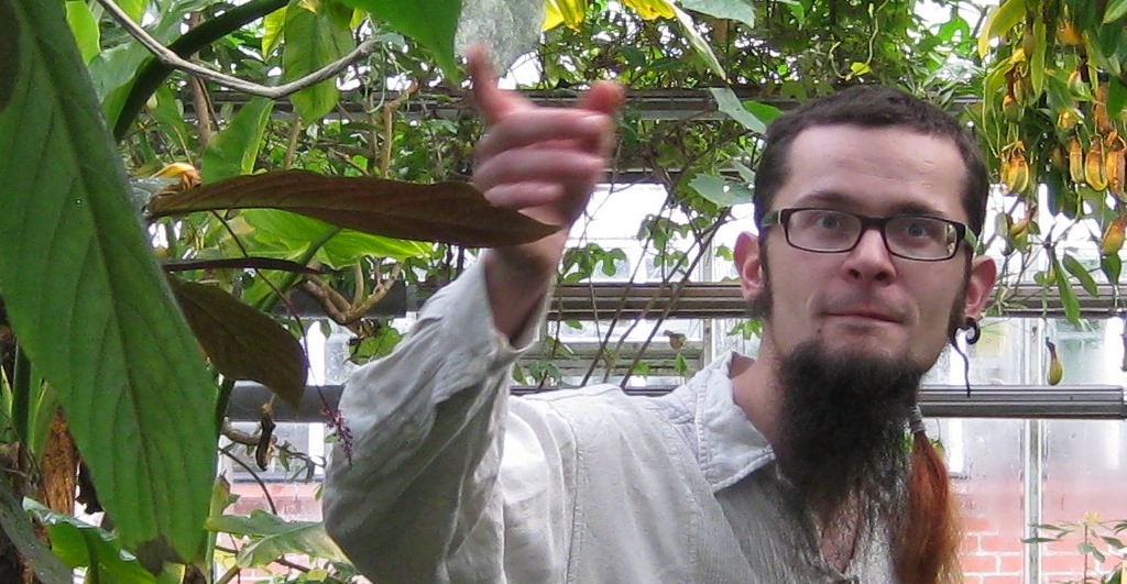 Steffen Ramm ist Gartenpädagoge und im Botanischen Garten bereits eine feste Institution. Seine Begeisterung für die Wunderwelt tropischer Pflanzen vermittelt er dem Publikum gern in frei erzählten Geschichten, wobei Legende und Wahrheit säuberlich auseinandergehalten werden.