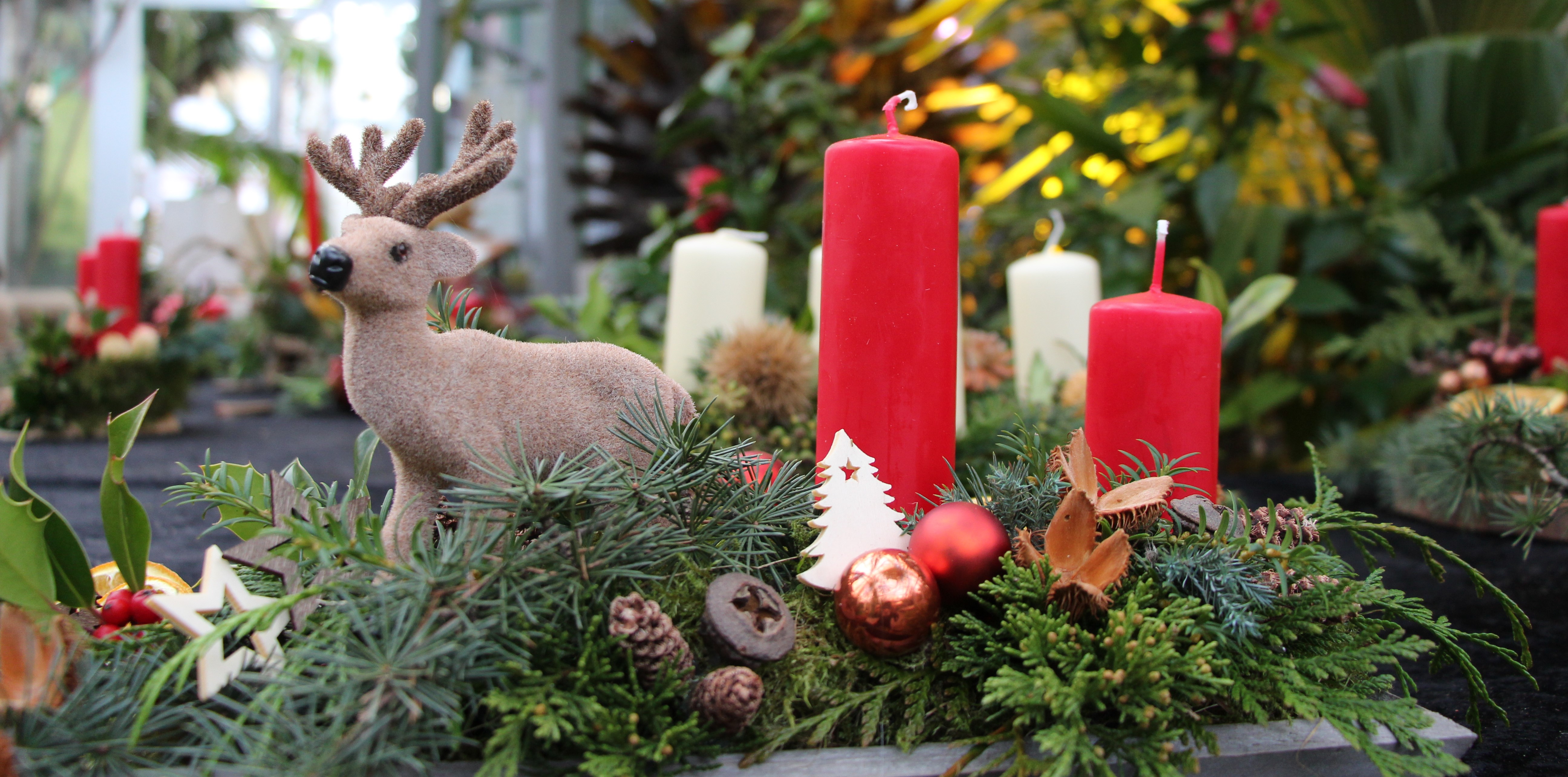 Alle Jahre wieder präsentiert der Botanische Garten in einer floristischen Ausstellung die schönsten Adventskränze und weihnachtlichen Dekorationen aus eigener Herstellung. Die Gartenprofis verwenden vor allem Naturmaterialien, Früchte und Samenstände von Pflanzen aus aller Welt. Die Besucher können sich inspirieren oder einfach in vorweihnachtliche Stimmung versetzen lassen. Die Exponate stehen zum Verkauf bereit und können am Ende der Ausstellung am 1. Dezember ab 15 Uhr abgeholt werden.