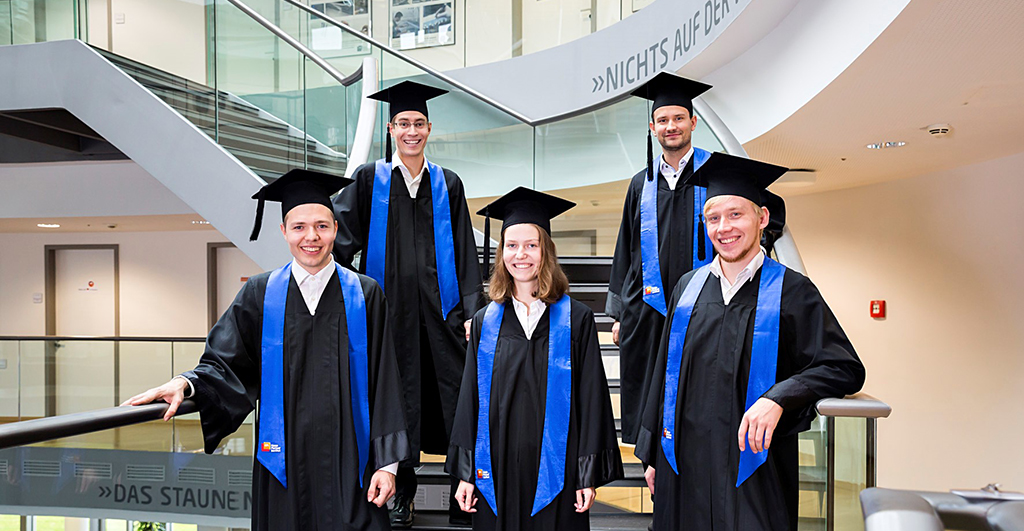 Gleich vier Master- und drei Bachelorstudierende haben an der gemeinsamen Digital-Engineering-Fakultät des Hasso-Plattner-Instituts (HPI) und der Universität Potsdam (UP) ihr Informatikstudium mit der Traumnote 1,0 abgeschlossen. Damit gehören sie zu den besten IT-Nachwuchsingenieuren Deutschlands! Mehr als 300 Gäste nahmen am Festakt und der Zeugnisübergabe teil - die Absolventen zu diesem besonderen Anlass traditionell gekleidet mit Talar, Barett und Schärpe.