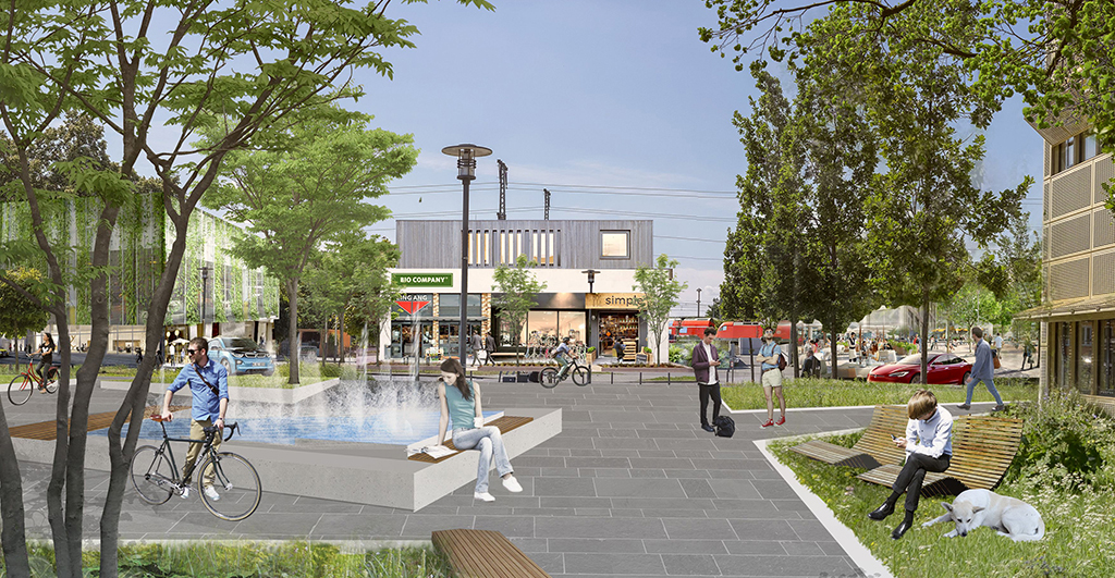Auf dem Campus der Universität schließlich übernähmen hohe Bäume die Regie. Ausläufer des nahen Waldes mit Ahornbäumen, Eichen und Robinien würden wie ein antikes Säulenportal den repräsentativen Eingang zum Unigelände markieren. Zwischen dem schwarzen Monolith der Bibliothek und dem goldenen Physikgebäude entstünde ein grüner Hain. Schatten spendende Bäume kontrastierten die klare Formensprache der Architektur. Am Boden würden helle, freundliche Materialien zum Spazieren und geschwungene Holzbänke zum Entspannen einladen. Gegenüber, auf dem Bahnhofsvorplatz, sorgten Cafés, Läden und Kioske für Trubel. Endlich gäbe es einen Bankautomaten, vielleicht einen Waschsalon, auf jeden Fall aber eine Fahrradstation. An regelmäßigen Markttagen böten die Bauern der Region frisches Obst und Gemüse zum Verkauf. Und sicher würden sich bald auch einige Arztpraxen ansiedeln. Will Golm zu einer echten „Knowledge City“ werden, muss die Wissenschaft ihren Elfenbeinturm verlassen, die Erdgeschosse ihrer Gebäude in die Umgebung öffnen und einen Austausch von Drinnen und Draußen zulassen. Fahrzeuge könnten in begrünten Parkhäusern unterkommen, damit die frei werdenden Plätze sich mit Leben füllen. Im Grünen zu wohnen und zu arbeiten, macht die Attraktivität Golms aus. Dies für die Zukunft zu erhalten, bedeutet, den Ort eher behutsam und kontrolliert zu verdichten, mit Respekt vor dem Landschaftsraum als dem verbindenden Element. Darauf könnten sich alle Quartiere und Anrainer einigen. Das wäre ein gemeinsamer Nenner, der eine Identifikation mit dem Ort ermöglichte: den Zugezogenen und Alteingesessenen genauso wie den Studierenden und Forschenden, die vielleicht nur für ein paar Jahre bleiben. Vielleicht aber auch länger.