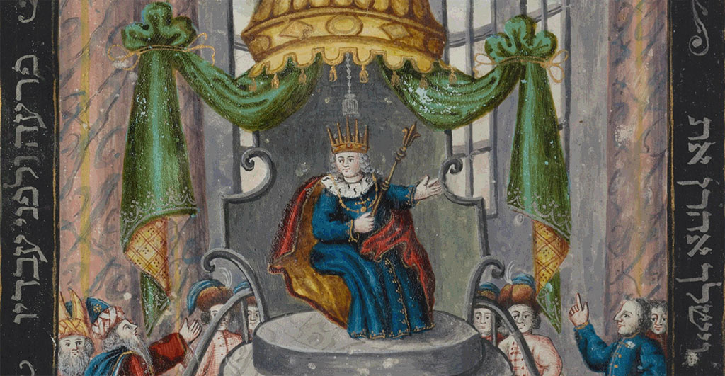 Bild: Illustration aus der Handschrift Hagadah shel Pesah im perush Yad Yosef u-perush al pi ha-sod, Staats- und Universitätsbibliothek Hamburg Carl von Ossietzky (SUB), Cod. Levy 22 (Ausschnitt). Den Link zum Digitalisat finden Sie im Judaica-Portal.