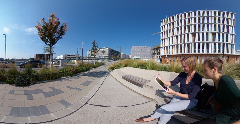 In den Seminaren der beiden Wissenschaftlerinnen lernen Studierende daher nicht nur, VR-Technologie zu nutzen, sondern vor allem, sie selbst zu kreieren. 2018 brachen sie dafür mit einer Gruppe Studierender für sieben Tage nach Wien auf. Im Gepäck: geografische Fachfragen zu Wien als grüne, sozial nachhaltige sowie smarte Stadt – und eine Handvoll 360 Grad-Kameras. „Wir haben sie als Forschende in die Stadt geschickt und auf Basis ihrer Forschungsfragen ‚Spuren‘ suchen lassen“, erklärt Katharina Mohring. Kann gemeinsames Gärtnern Wien zu einer „grüneren Stadt“ machen?, fragte eine der studentischen Gruppen und heftete sich an die Fersen der Wiener Urban-Gardening-Kultur. Nach einführenden Vorträgen wurden Recherchen angestellt, anschließend Gärten besucht, 360 Grad-Fotos gemacht, Interviews geführt und Videos gedreht. „Ziel war es, vor dem Hintergrund der jeweiligen Fachdebatte das Thema wissenschaftlich fundiert zu bearbeiten.“ Andere beschäftigten sich mit dem nachhaltigen Vorzeigeviertel Aspern oder dem Verkehrskonzept der österreichischen Metropole. Nach zwei Tagen wechselte die Rolle: Aus Forschenden wurden Designende. Die Studierenden waren nun herausgefordert, aus ihren Forschungsergebnissen didaktische Konzepte für Virtual-Reality-Exkursionen zu entwickeln. „Dafür mussten sie Storyboards erstellen, sich Kamera-Einstellungen überlegen, das Material schon vor Ort sorgfältig zusammenstellen“, erklärt Nina Brendel. „Vor allem aber haben sie gelernt, dass es nicht ‚das eine‘ Wien gibt. Durch die Auswahl der Standorte, Einstellungen und Gesprächspartnerinnen und -partner haben sie ihre persönliche Repräsentation des Raums erschaffen.“