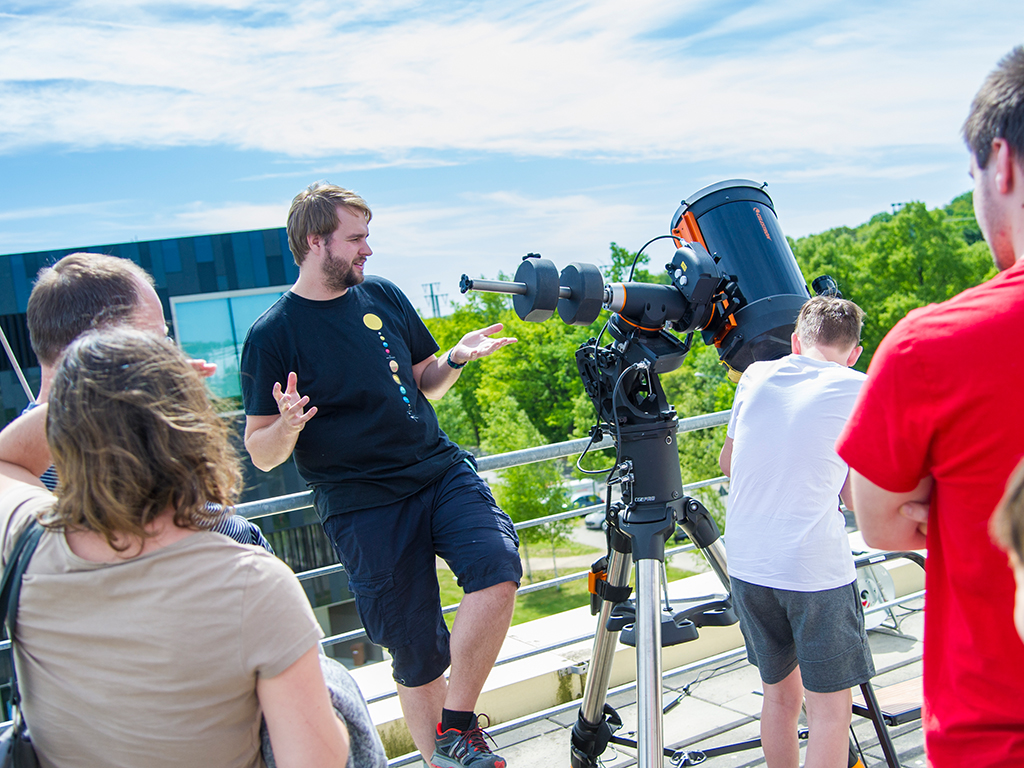 Foto: Beschäftigte des Instituts für Physik und Astronomie der Universität Potsdam bieten bei gutem Wetter einen sonst verborgenen Blick auf die Sonne. Foto: Thomas Hölzel