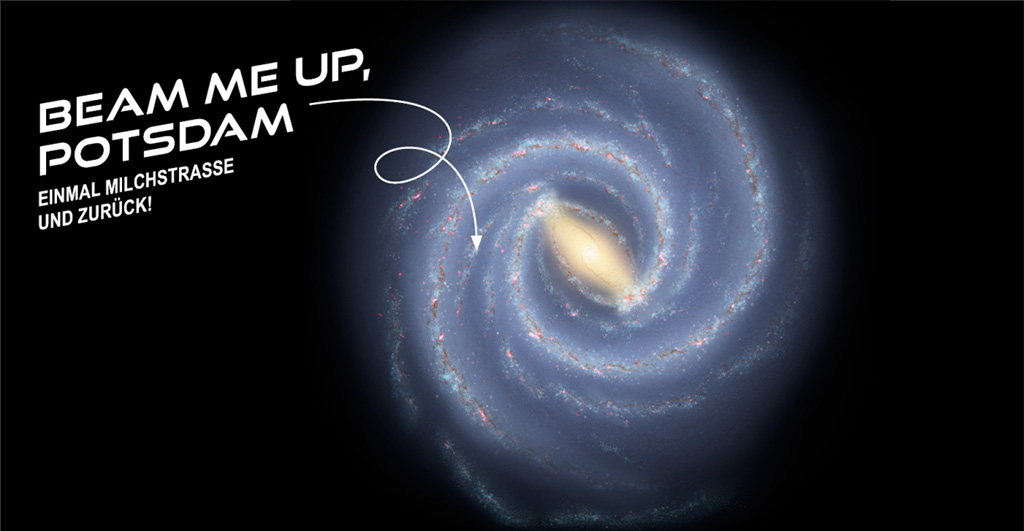 Darüber hinaus wird ein personenhohes Banner eine Visualisierung der Milchstraße zeigen: Eine besondere Möglichkeit für Durchreisende, um ein Selfie mit unserer Galaxie zu machen. Für die Schülerinnen und Schüler entwickeln Studierende der Universität Potsdam zusätzlich ein spannendes Angebot: „Milky Bags“, Experimentier-Rucksäcke, die im Unterricht eingesetzt werden können und langfristig zur Verfügung stehen.