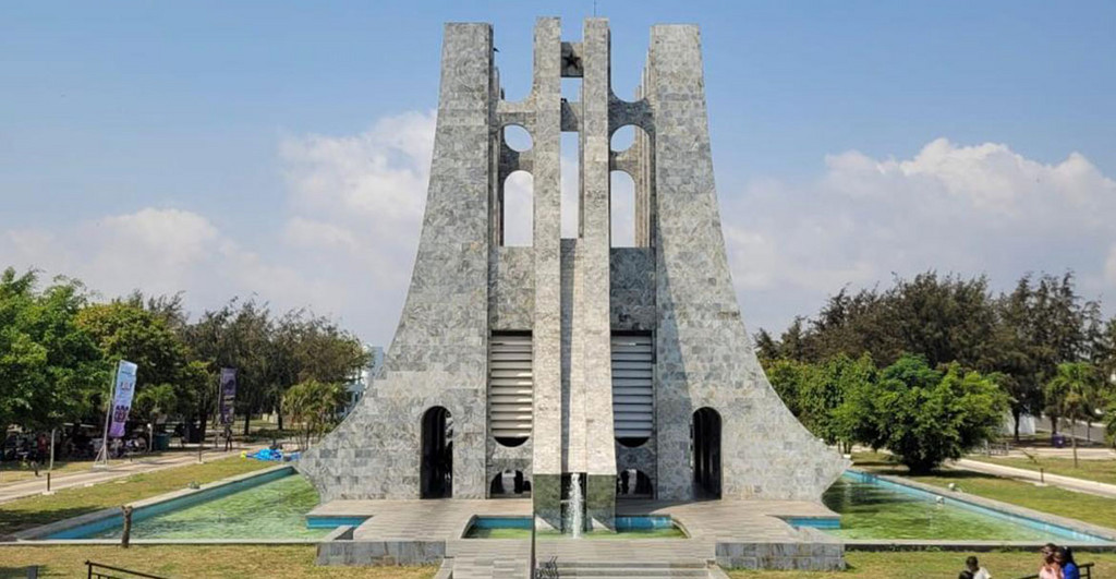 Heute steht mit dem Besuch der Legon Interdominational Church auf dem Campus und des Kwame Nkrumah Memorial Parks ein Kontrastprogramm zum Leben in Ododiodioo an. Zum Gottesdienst in der Kirche, der in englischer Sprache abgehalten wird, werden wir herzlich empfangen und gleich mit einem lebendigen Chorauftritt beeindruckt. Besonders aufgefallen ist uns ein Lied, das in indigener Sprache gesungen und simultan für die ganze Gemeinde ins Englische übersetzt wird (siehe Bild).