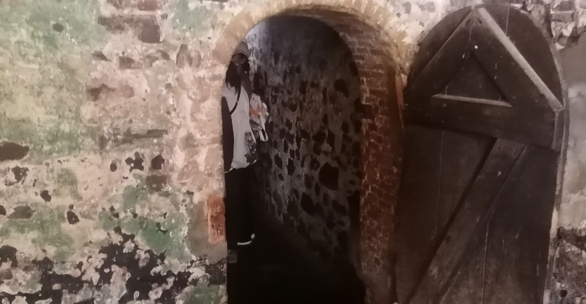 Es geht weiter in die Katakomben, in denen männliche und weibliche Sklaven getrennt untergebracht wurden. Wir stehen in einem ca. 30 Quadratmeter großen, dunklen und feuchten Raum mit gewölbten Decken. Wir erfahren, dass hier 400 Männer untergebracht waren. Wieder fühlen wir uns überaus unwohl. Durch einen schmalen Gang laufen wir gebückt in den nächsten Raum, den point of no return. Hier wurden die Sklaven massenweise durch ein schmales Fenster direkt auf die Schiffe verfrachtet und – kehrten nie zurück.