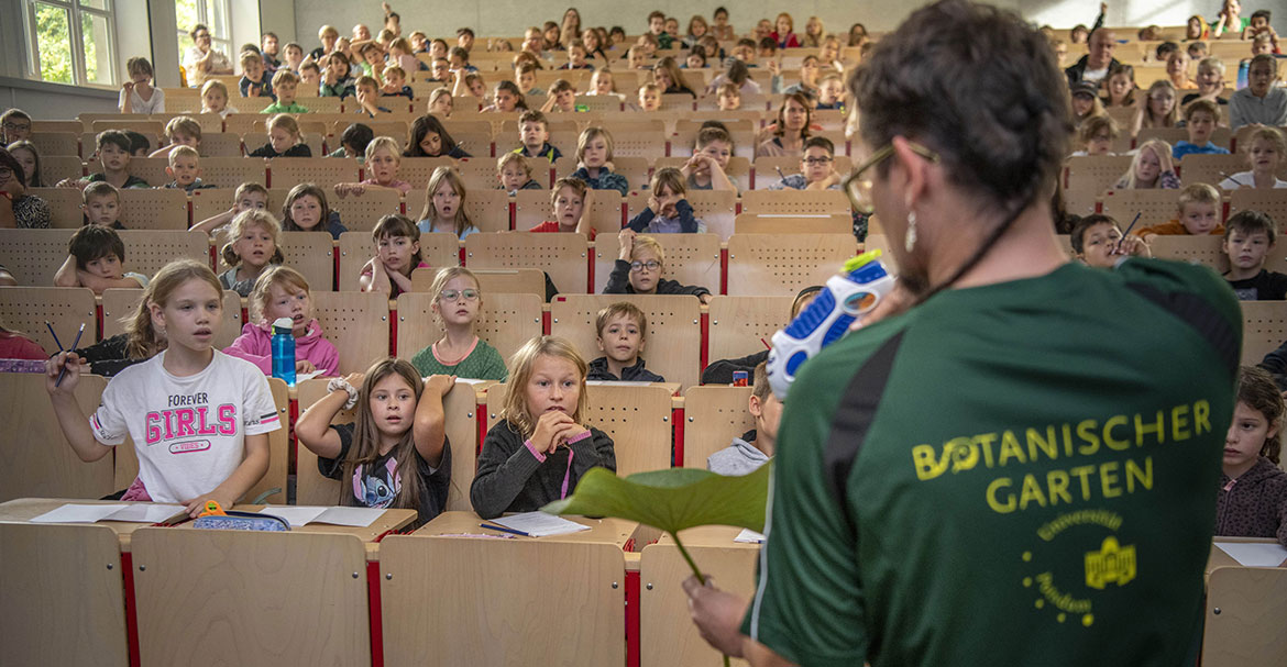 2024_085_KinderUni-2023_ThomasRoese_UN13344-min: Gartenpädagoge Steffen Ramm bei der Kinder-Uni. Foto: Thomas Roese 2024_085_KinderUni-2023_ThomasRoese_UN13500-min: Geoforscher Martin Trauth bei der Kinder-Uni. Foto: Thomas Roese 2024_085_KinderUni-2023_KevinRyl-7712-min: Kinder im Klassenzimmer von morgen – mit Lernroboter. Foto: Kevin Ryl