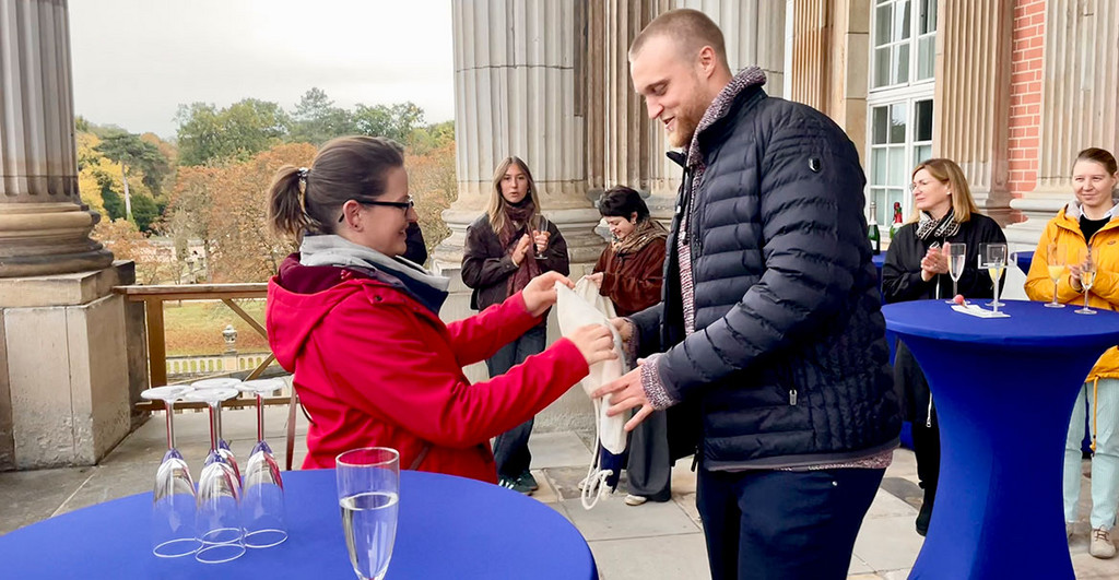 Beim Empfang auf dem Balkon des Präsidialamtes mit Blick auf das Neue Palais waren u.a. die Laufbahnberaterin der Olympiastützpunktes Beate Pezold, der Geschäftsführer des Studierendenwerks West:Brandenburg Peter Heiß, die Vizepräsidentin für Forschung, wissenschaftliche Qualifizierungsphase und Chancengleichheit Prof. Dr. Barbara Höhle und die Vizepräsidentin für Lehre, Studium und Europa Dr. Britta von Kempen, der Kanzler Hendrik Woithe, die Leitung des Hochschulsports Potsdam sowie der Vorstand des Kapitels Sport der Universitätsgesellschaft e.V. anwesend.