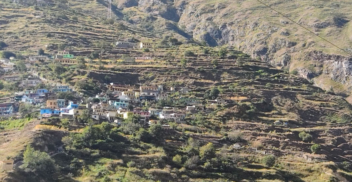 Nach der geomorphologischen Analyse des 2300 Meter langen Abschnitts des Dhauliganga besuchen wir ein Dorf namens Balgaon, das sich mehrere Hundert Höhenmeter über dem Fluss an die Bergflanke schmiegt. Es ist nur über eine Hängebrücke zu Fuß zu erreichen. Die Dorfbewohner erzählen uns, welche Arten von Feldfrüchten sie in den Bergen anbauen. Im Wesentlichen sind das Hirse, Gerste, Kartoffeln, Spinat, Kohl und Bohnen. Die Felder sind terrassenförmig aufgebaut, um die Gebirgslandschaft optimal zu nutzen. Allgemein hat der biologische und ökologische Anbau eine große Bedeutung in Uttarakhand, da viele der landwirtschaftlichen Praktiken noch traditionell und nachhaltig sind.