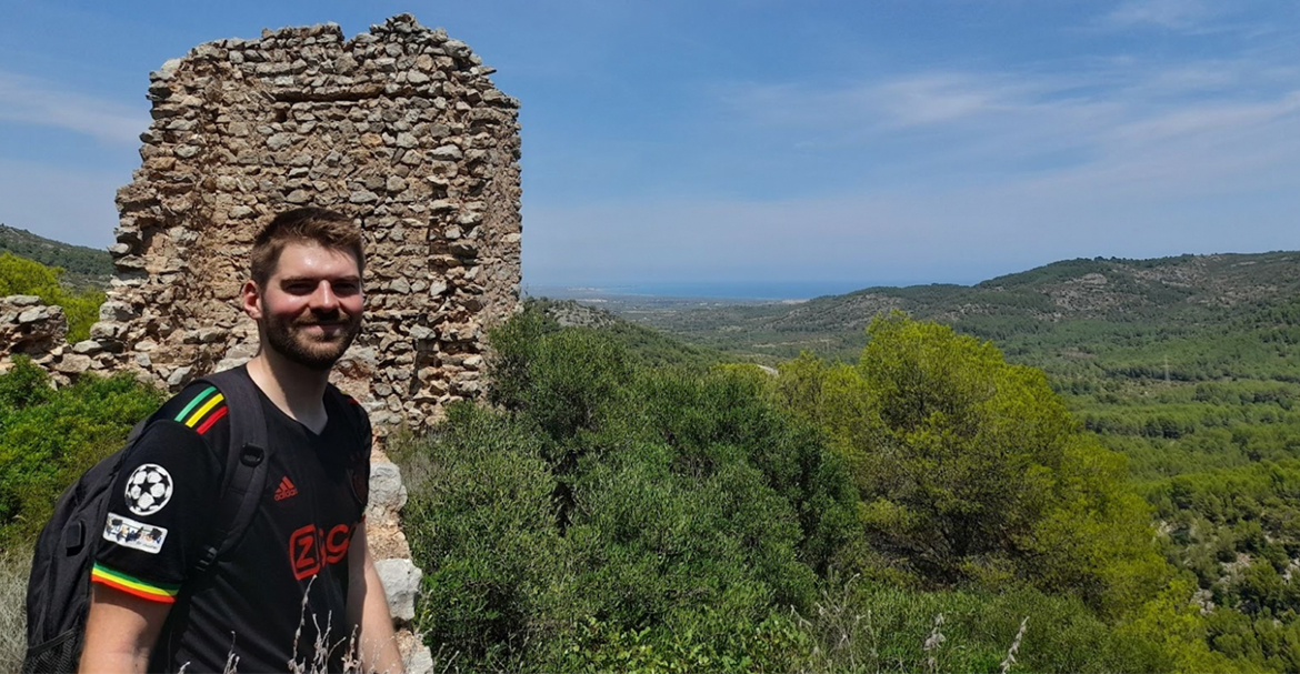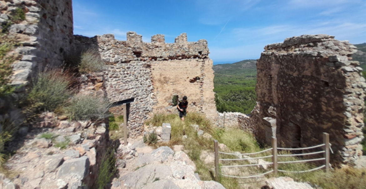 Während die meisten am Anreisetag an den Strand gegangen sind, ist ein kleiner Teil unserer Gruppe nach Benicássim gefahren und hat sich von dort auf eine Wanderung im Desert de les Palmes-Landschaftsschutzgebiet begeben. Die Pflanzenvielfalt in dieser zerklüfteten, roten Bergwelt ist malerisch und während wir die Aussicht genießen, singen und uns unterhalten, vergeht die Zeit wie im Flug. Gegen halb vier erreichen wir schließlich das Castell. Der schmale Pfad, der von der Straße den Berg hinaufführt, ist steil, sodass wir mehrfach rasten müssen. Als wir glauben, endlich oben zu sein, sind wir enttäuscht. Bis auf ein kurzes Stück Mauer und Gestrüpp ist da nichts. Wir sind schon dabei, frustriert umzukehren, als wir doch noch die „echte“ Burgruine entdecken, die noch weiter oben liegt. Was wir dort finden, macht den Aufstieg absolut lohnenswert. Touristisch fast unerschlossen (abgesehen von dem steilen Trampelpfad und einigen Wegweisern), thront die Ruine auf dem Gipfel des Berges. Wir sind allein mit dem Gemäuer inmitten des Bergpanoramas. Begeistert arbeiten wir uns weitervor und staunen nicht schlecht, als wir im Boden ein Loch finden, das den Blick auf ein darunterliegendes Gewölbe freigibt. Die ganze Anlage wirkt so unberührt, dass es sich fast so anfühlt, als wären wir die ersten, die diese Ruine zu Gesicht bekommen.