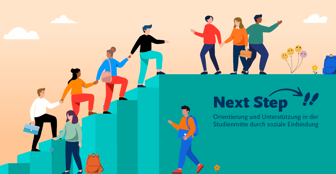 „Next Step“ richtet sich an Studierende in der Mitte ihres Studiums, in der sie nicht mehr von den Orientierungsangeboten des Anfangs profitieren und sich mit steigenden Leistungsanforderungen konfrontiert sehen. „An diesem Punkt bricht mitunter die Motivation ein, kommen Zweifel an der Studienwahl auf, fühlen sich manche sozial isoliert. ‚Next Step‘ soll dem entgegenwirken“, sagt Projektleiter Christoph Beier von der Zentralen Studienberatung.