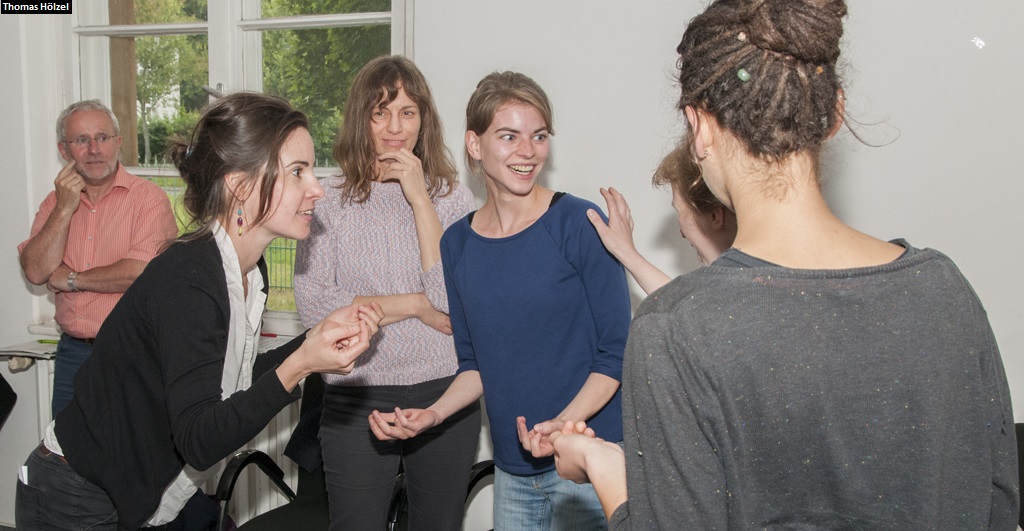 The workshop participants form a large circle. Lined up like a string of pearls, each member of the group translates one sentence after the other into motions. The person opposite the actor has to take note of their gestures and accurately repeat the associated sentence in a second round in which the actors repeat their gestures. This exercise combines cognitive and artistic elements and conveys an impression of what drama in education can do in the modern foreign language classroom. It has long become one of the important disciplines related to didactics. Proponents of this method aim to increase educational achievement by means of an action-oriented, creative form of teaching and learning that incorporates play and representation. As Schewe once said, pupils learn with their heads, hearts, hands and feet.