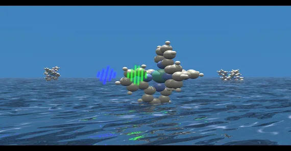 Foto: Metalorganisches Molekül Ruthenium-Trisbipyridine, das als Lichtsammelmolekül in Farbstoff sensitivierten Solarzellen eingesetzt wird. (Foto: Markus Gühr)