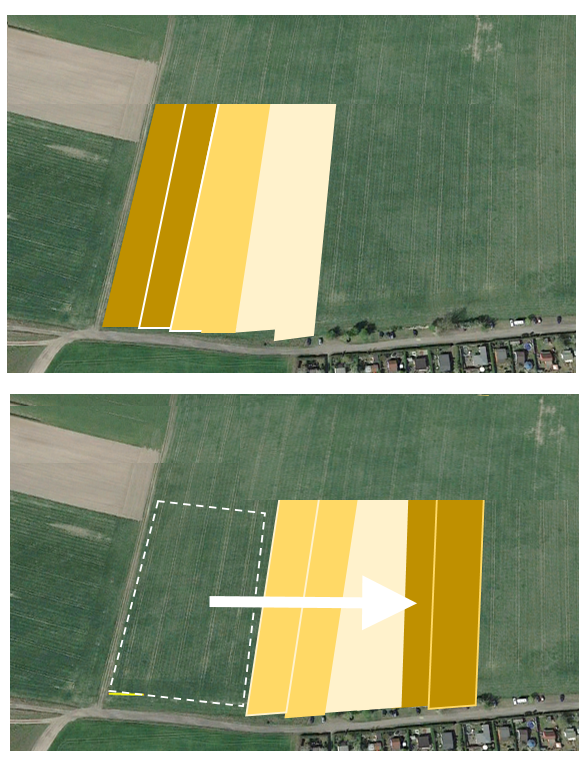 Figure 1: The Rolling Wildflower Block "wanders" across the fields, with darker colours representing the older strips in which the vegetation differs due to age.