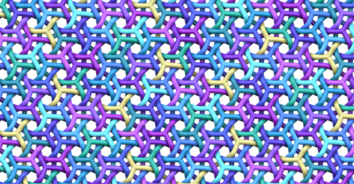 We can ask the question: How does one tangle honeycomb networks together into a symmetric pattern? As an example, the structure shown in the image has 13 networks tangled together in a highly symmetric way. This is a question of interest to both mathematicians and synthetic chemists alike, used in the design and understanding of chemical frameworks, and as curious mathematical objects. In a recent paper, we studied this question using a constructive mathematical technique based on graph theory, low-dimensional topology and geometry. What we found was the enumeration of various highly symmetric entangled structures, with component numbers ranging from 1, 2, 3, 4, 6, 7, 9, 12, 13, and so on. We are even presenting an infinite series of structures with increasing numbers of networks tangled together, which in theory gives a method for the entanglement of infinitely many honeycomb networks together.