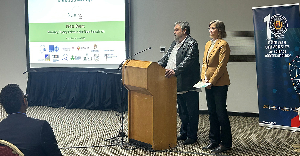 The event concludes with a lively and engaged discussion, focused on how to build on the momentum created by the NamTip project, with the firm intention of having a concrete impact, for example by supporting local communal farmers’ communities to co-develop plans for improved rangeland management by building additional fences, thereby seeking the support from the Government. Prof. Dr. Anja Linstädter picks up on this theme, elaborating on plans to continue the work in the future. Her message is clear and hopeful: