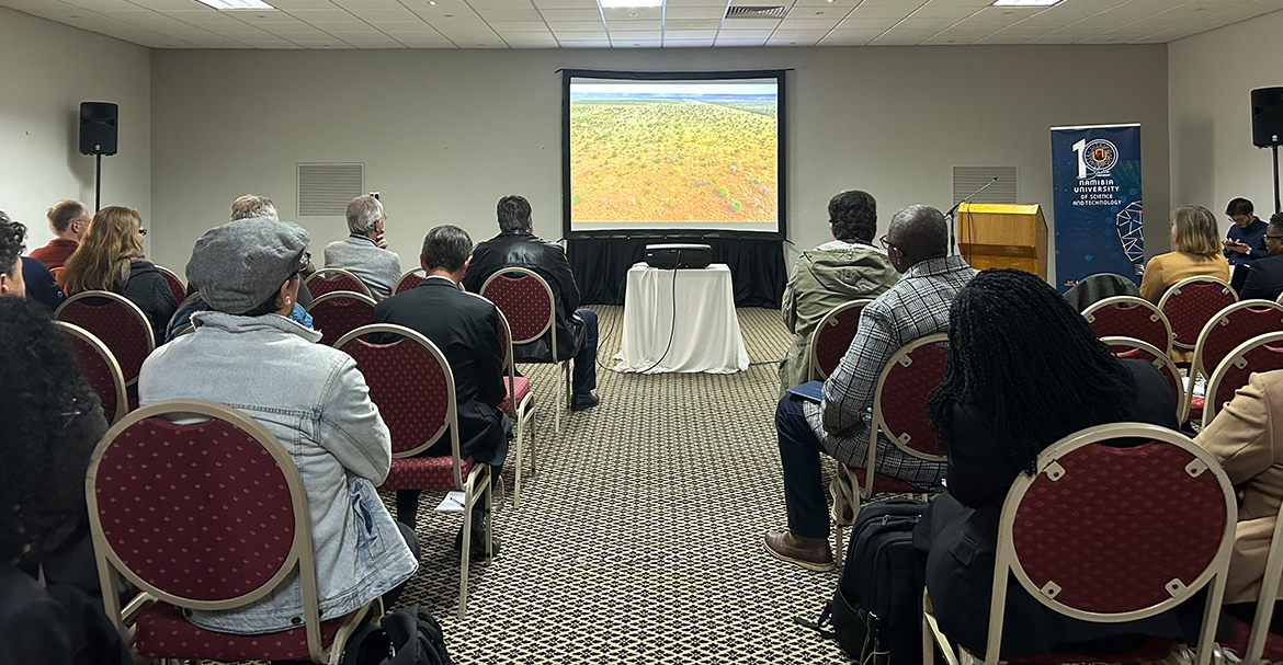 Before the break, Dr. Meed Mbidzo (NUST) presents on the socio-economic and political drivers of desertification tipping points in both Namibia’s freehold and communal lands. She shares comparative graphs, showing that rangelands in freehold areas tend to be in better condition-characterized by higher productivity and lower forb content. She attributes this to historical external drivers, noting that during colonization, many communal farmers were relocated to less productive lands with poor water access, making sustainable land management extremely difficult.